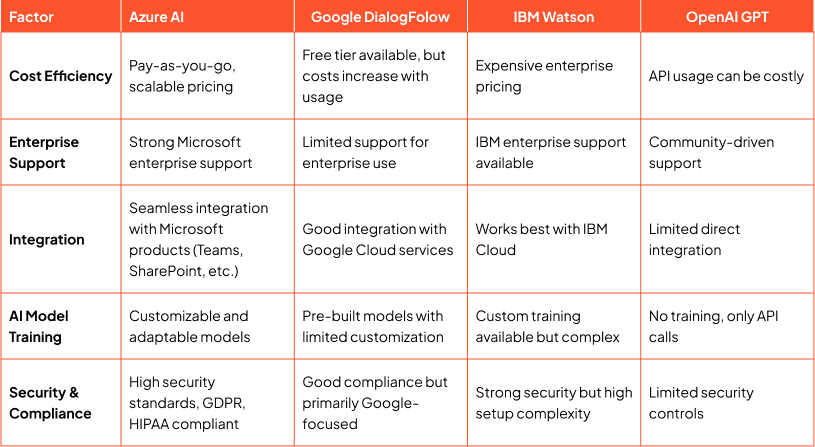 Azure AI was chosen because of its cost-effectiveness, strong enterprise support, seamless integration with UTVI’s Microsoft ecosystem, and high security standards. Unlike other AI solutions, Azure AI provides the flexibility to build, train, and deploy models while ensuring compliance with enterprise security requirements.